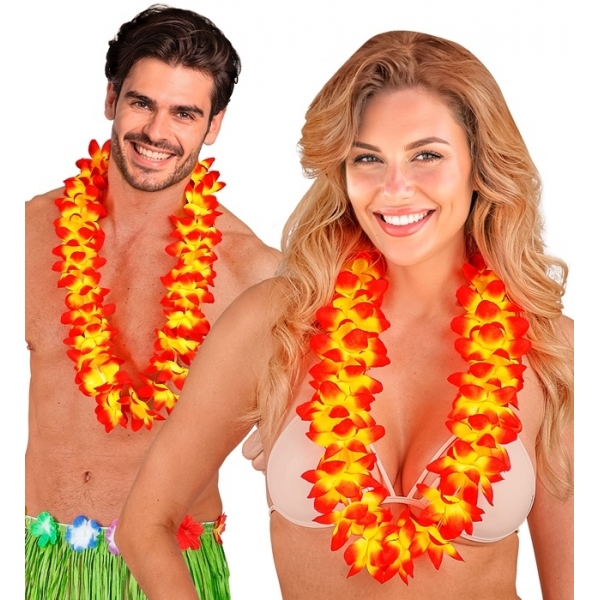 Oranžas Havaju krelles. Krāsains aksesuārs pludmales ballītēm un svētkiem.