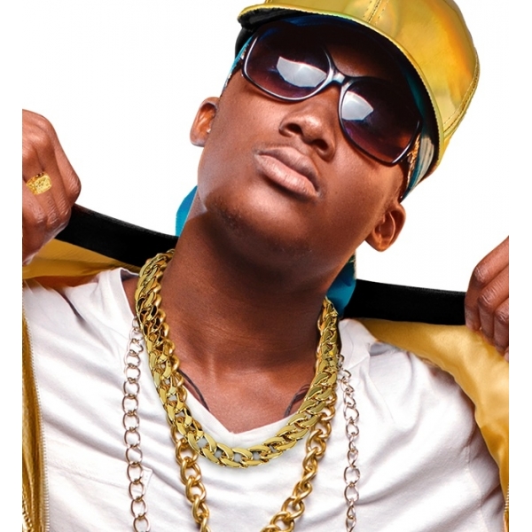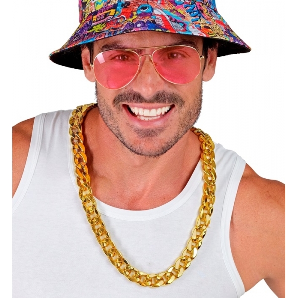 Zelta dekoratīvā kaklarota 72 cm garumā — lielisks aksesuārs retro stilam, hiphopa tēlam vai svētku kostīmam.