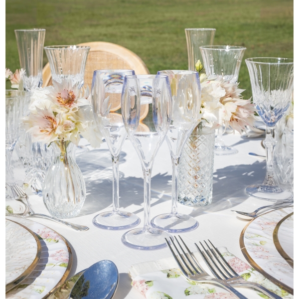 Caurspīdīga šampanieša glāze (flute) no augstas kvalitātes plastmasas.