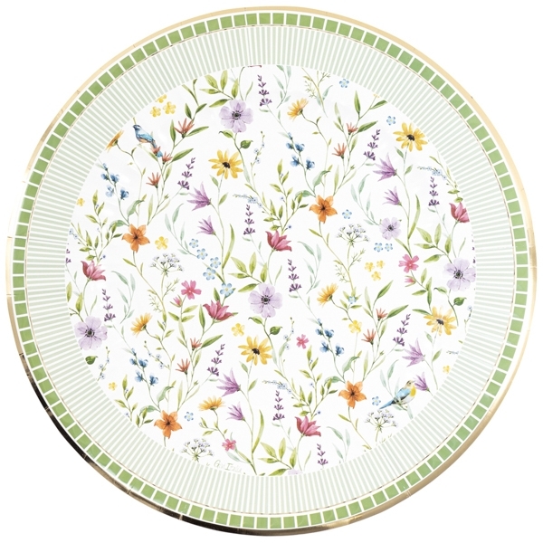 6 lielas papīra šķīvji, 33 cm, dizains "Pavasara dārzs"