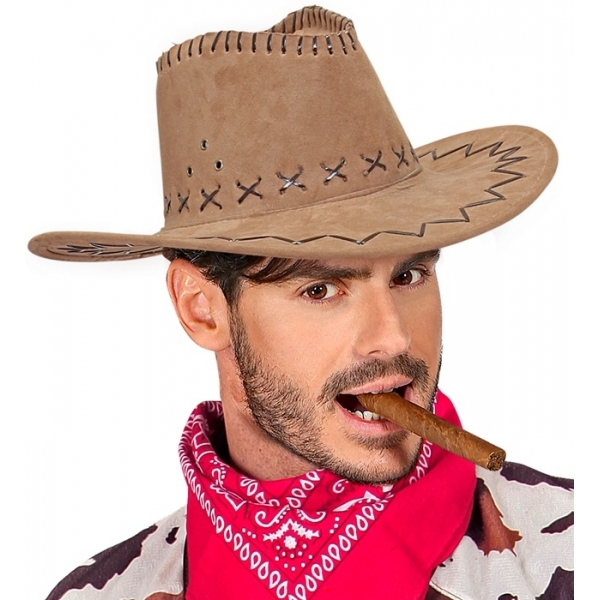 Kovboju cepure, zamša, ar dekoratīvu cauršuvumu