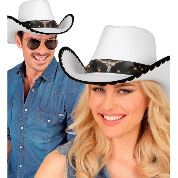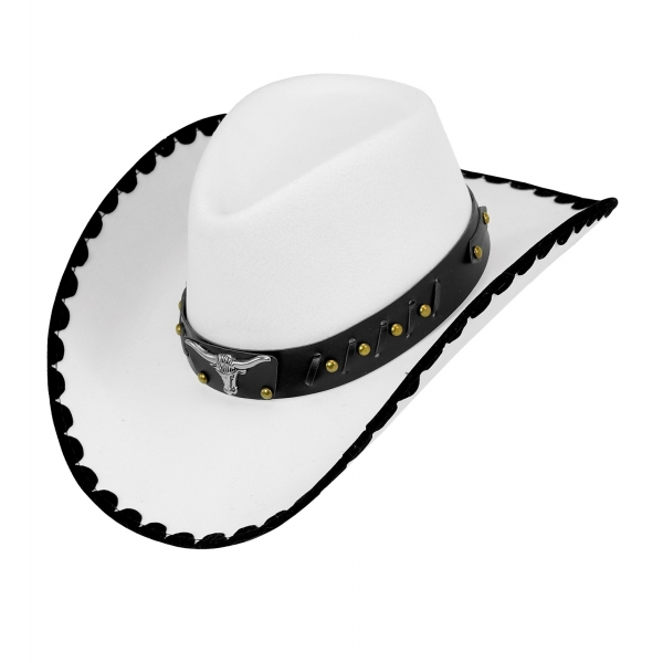 Balta filca kovboju cepure ar vērša simbolu