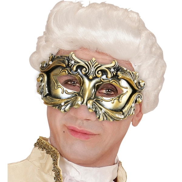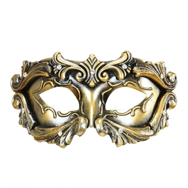 Karnevāla maska baroka stilā, bronzas krāsā, ar dārgakmeņiem