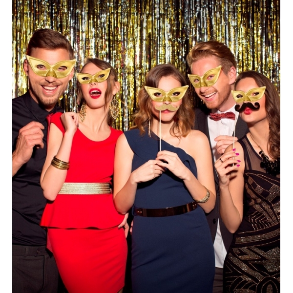 Zelta “Papillon” acu maska ar tauriņa siluetu. Izteiksmīgs un viegls aksesuārs ballītēm.
