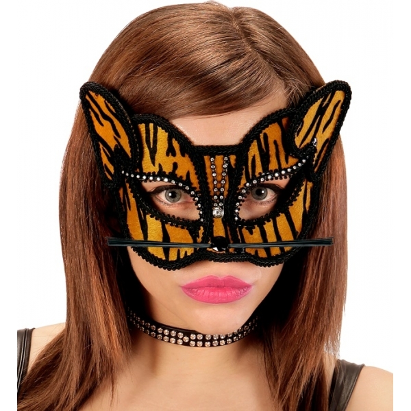Tīģera acu maska ar spīdīgiem kristāliņiem košam tēlam. Lieliski piemērota masku ballēm un karnevāliem.