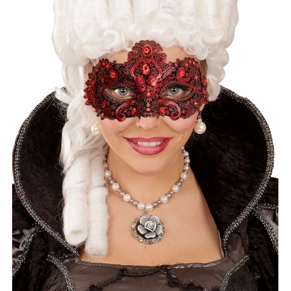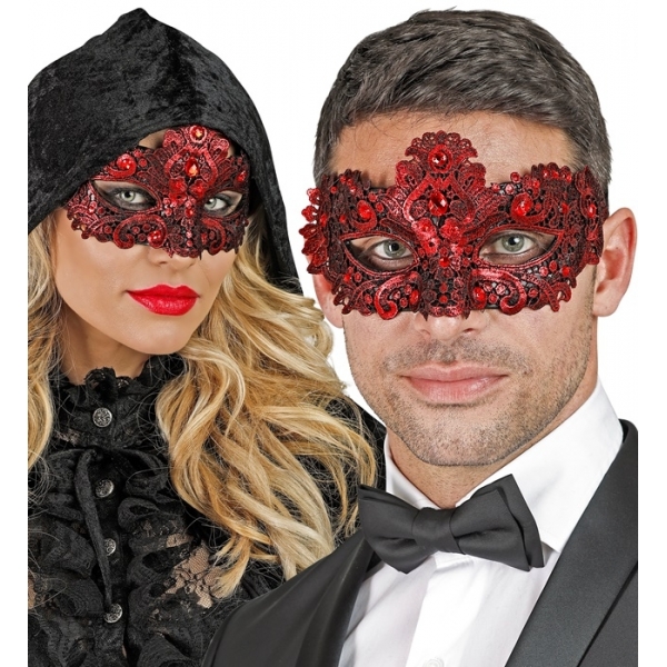Koša sarkanā teātra maska svinīgam tēlam. Lieliski piemērota masku ballēm.