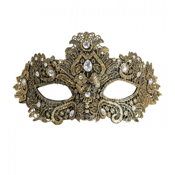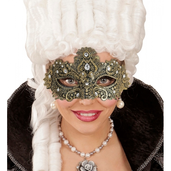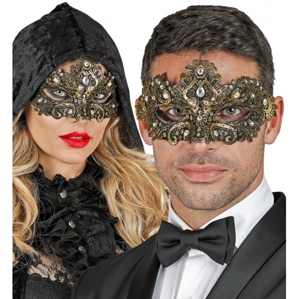 Izsmalcināta zelta teātra maska karnevāliem un tematiskām ballītēm.