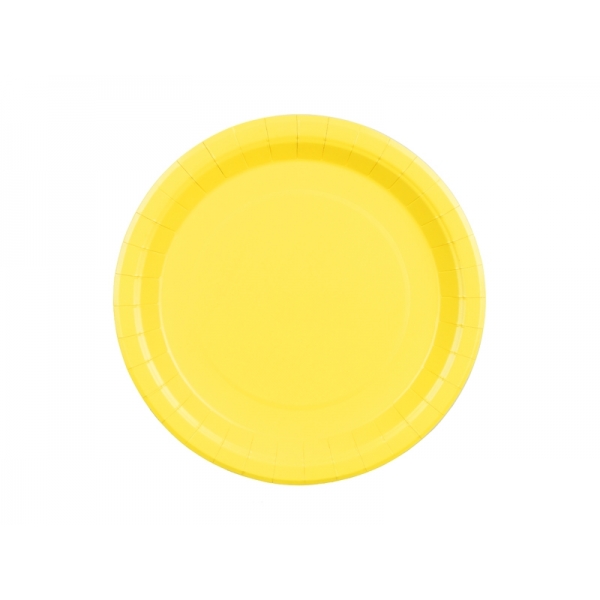 Papīra šķīvji, dzeltenas, 23 cm., 6 gab. — svētku dekorēšanai, galda noformēšanai un ballītēm. Piemērots dzimšanas dienām, ballītēm un pasākumiem. Kvalitatīva prece: pieejama veikalā un iespējama piegāde.