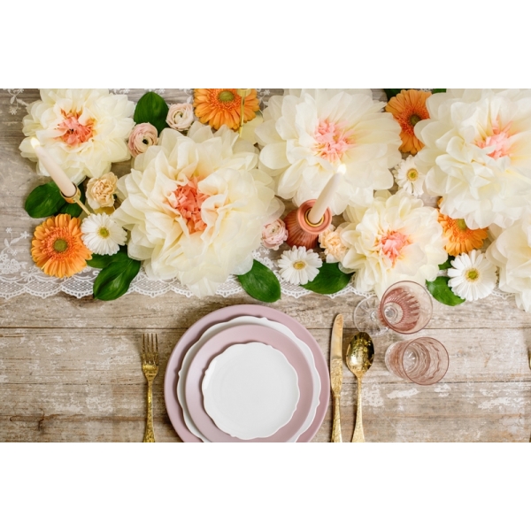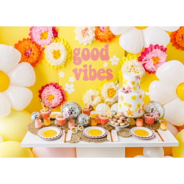 Papīra dekorācijas Ziedi krēmkrāsā. Komplektā ir 5 gabali 3 izmēros (1 liels, 2 vidēji, 2 mazi). Izmērs pēc salocīšanas aptuveni 30 cm, 25 cm, 20 cm.