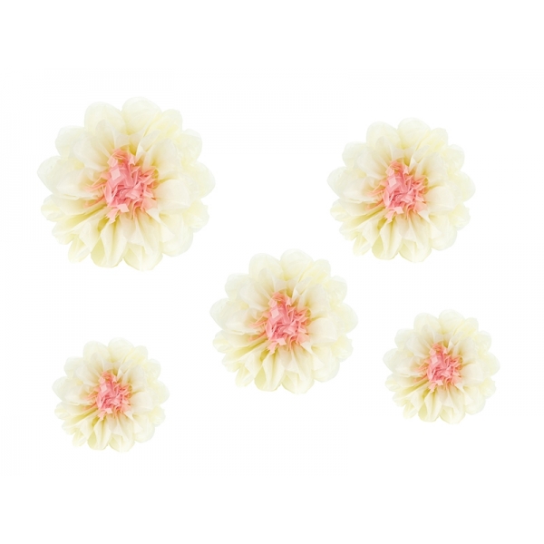 Papīra dekorācijas Ziedi, krēma krāsā, 5 gab., 30-20 cm.