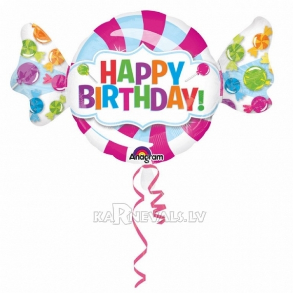 Folijas hēlija balons “Konfekte Dzimšanas dienai”, izmērs 101 x 60 cm.