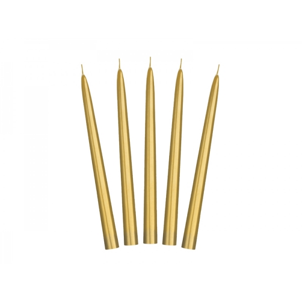 Koniska svece, metālika zelta, 24 cm, komplekts 1 gab.
