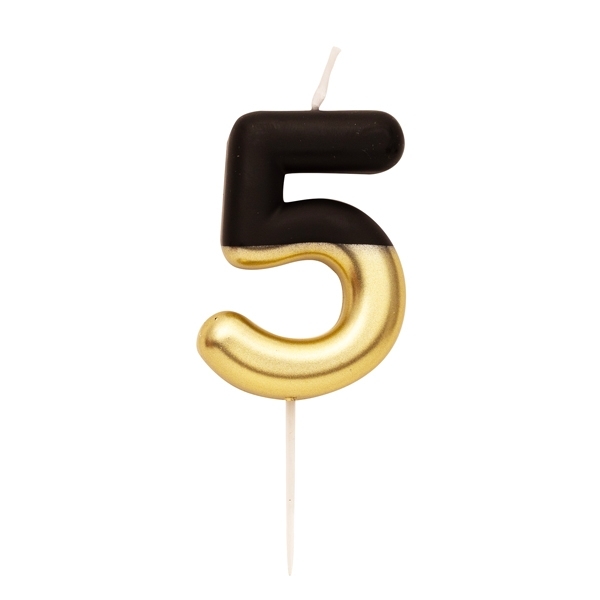 Ciparu svece "5" melna un zelta 10.5 cm