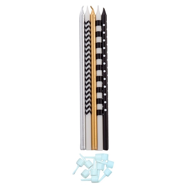 10 sveces ar melnbaltu zīmējumu, zeltainas un sudrabainas, 15.5 cm