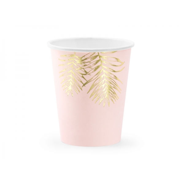 Glāzes ar zelta lapām, maigi rozā, 220 ml, komplekts 6 gab.