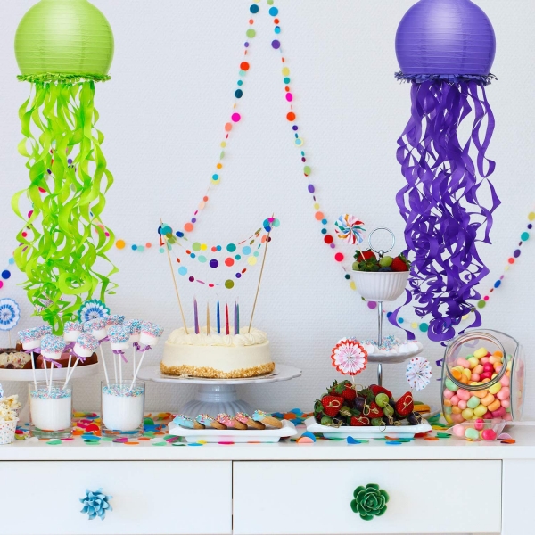 Plaši lietojumi: medūzas laternas var uzklāt kā dažādu ballīšu dekorācju - Baby Shower, kostīmu ballītes, baseina ballītes vai vienkārši pakarināt no griestiem, lai izrotātu bērnu guļamistabu.